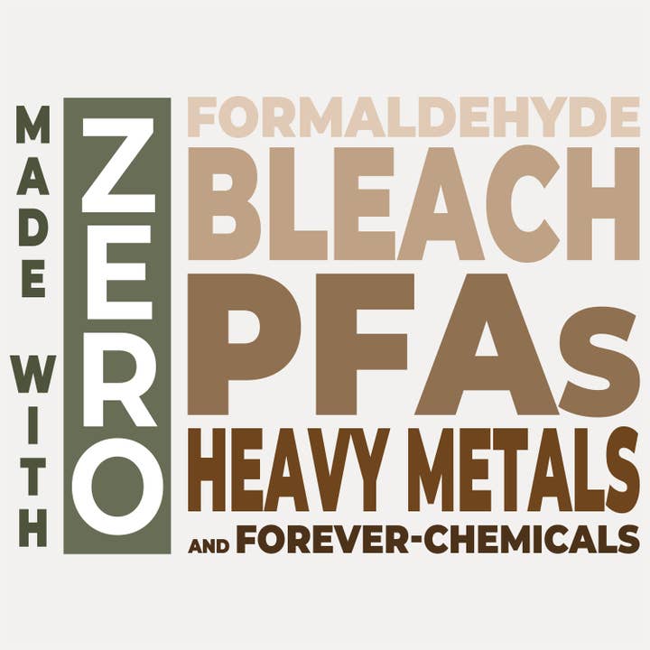 Verified FREE of Harmful Chemicals | Ours is certified PFAS-free (No forever chemicals), certified formaldehyde-free, and certified heavy metal-free. See our third-party testing for PFAS and the testing for Heavy Metals.