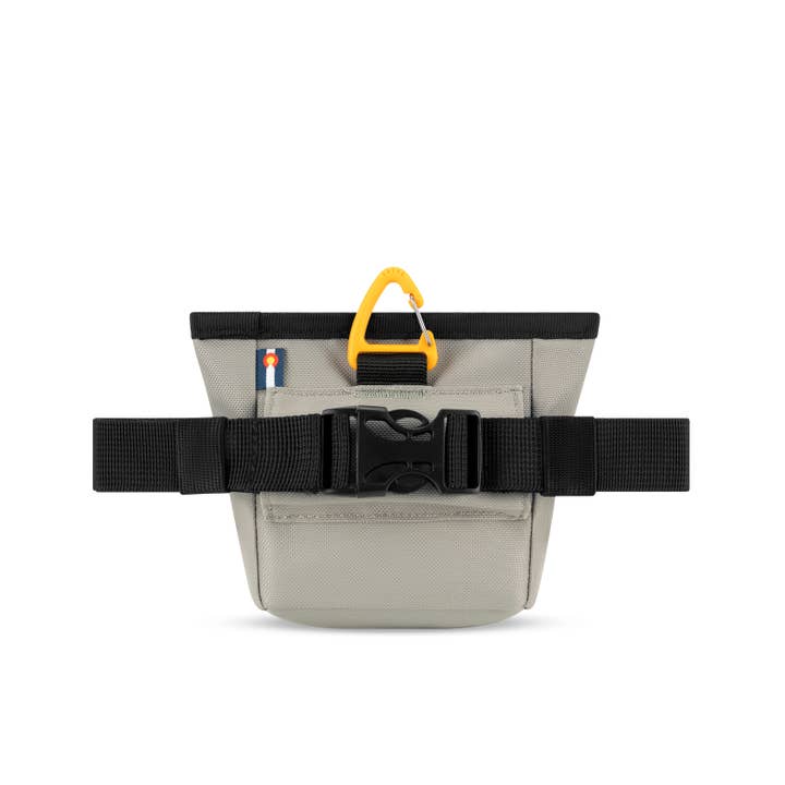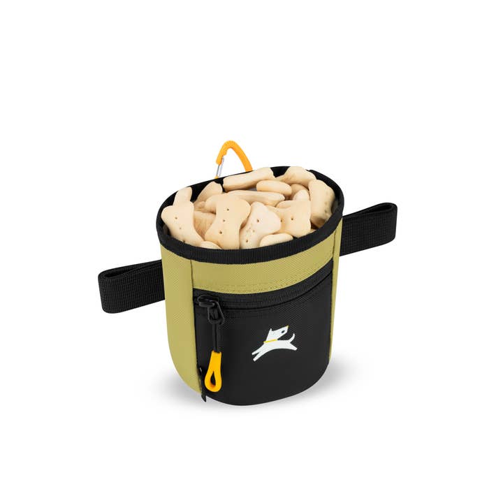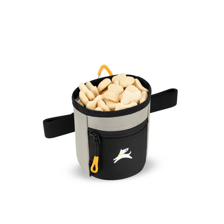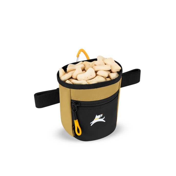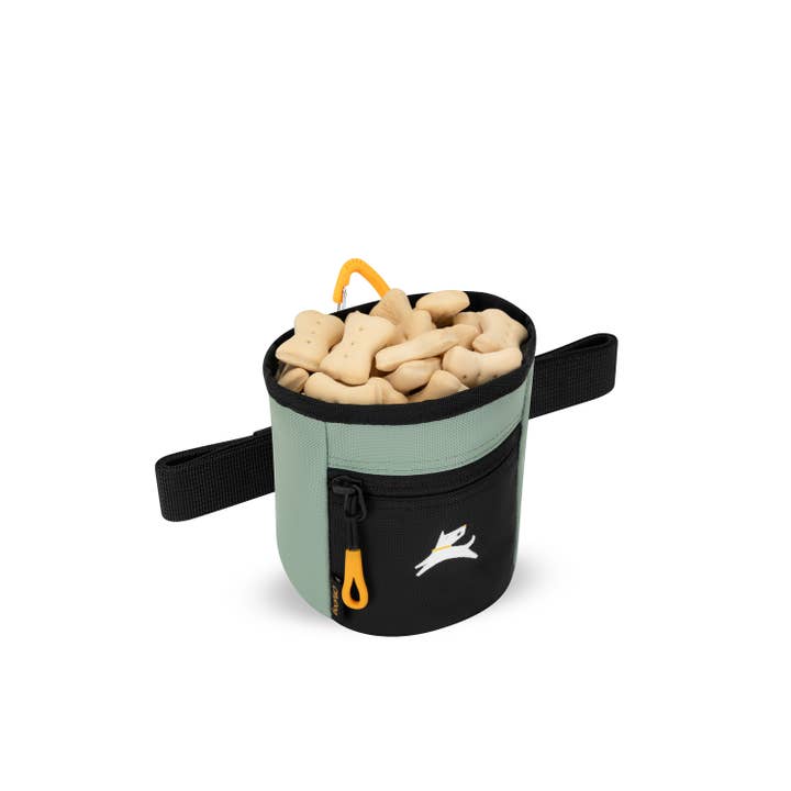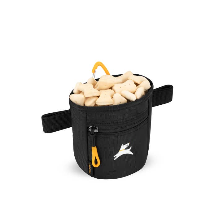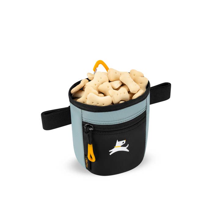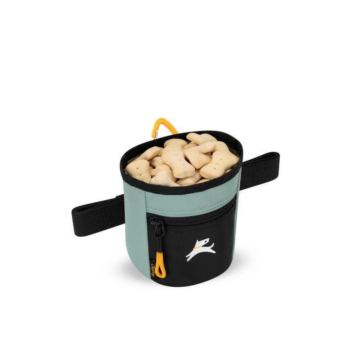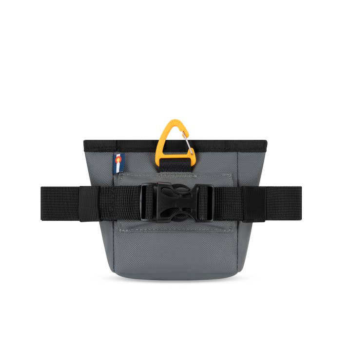 It’s the number ONE essential treat pouch for all dog trainers! Grab a dog treat quickly with a magnetic closure from this small but spacious pouch when your dog minds their manners, or just because! Made with recycled materials, this water-resistant pouch easily straps around your waist or clips anywhere with ease.