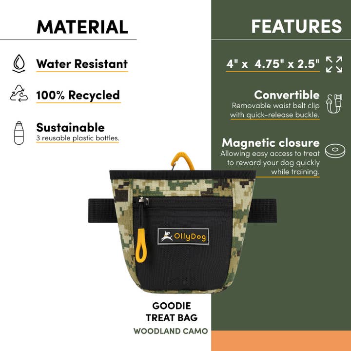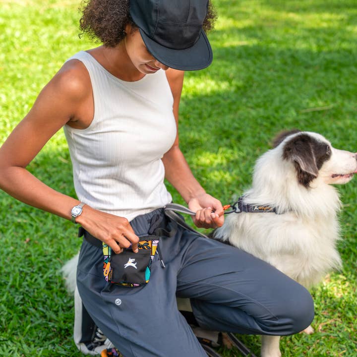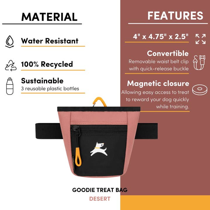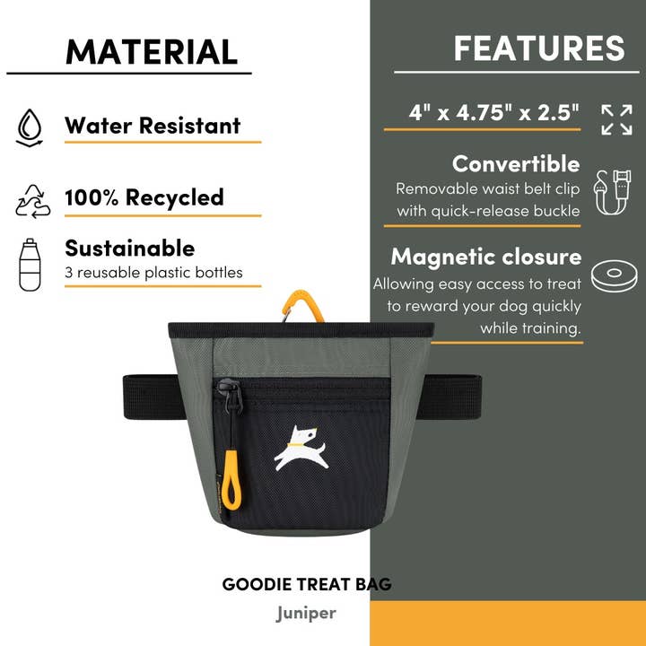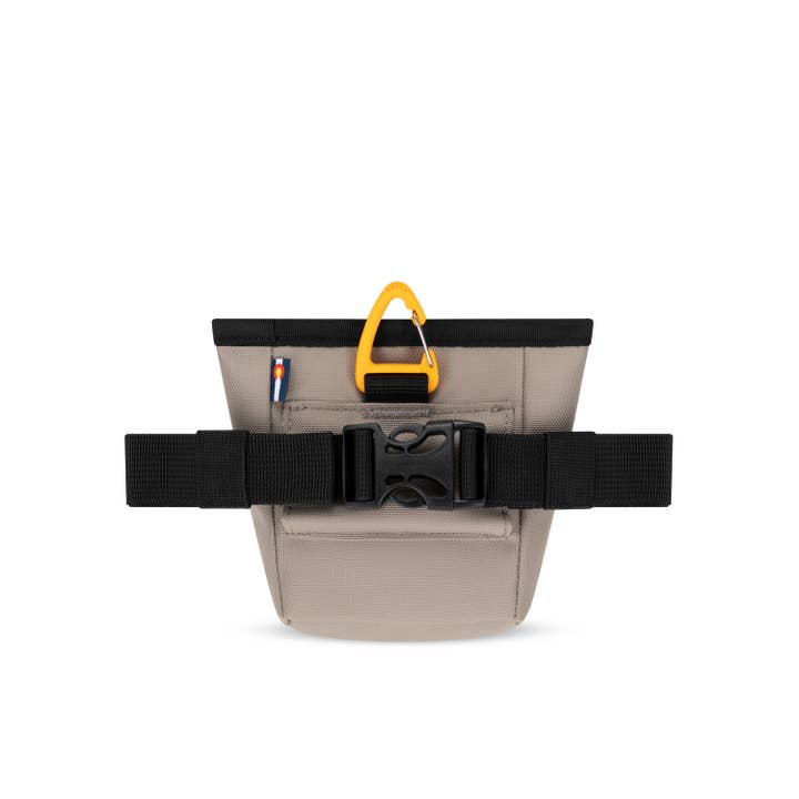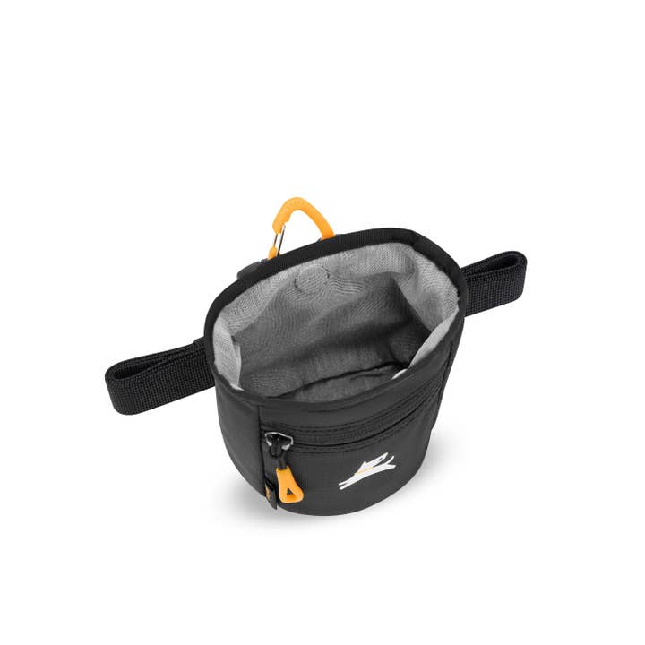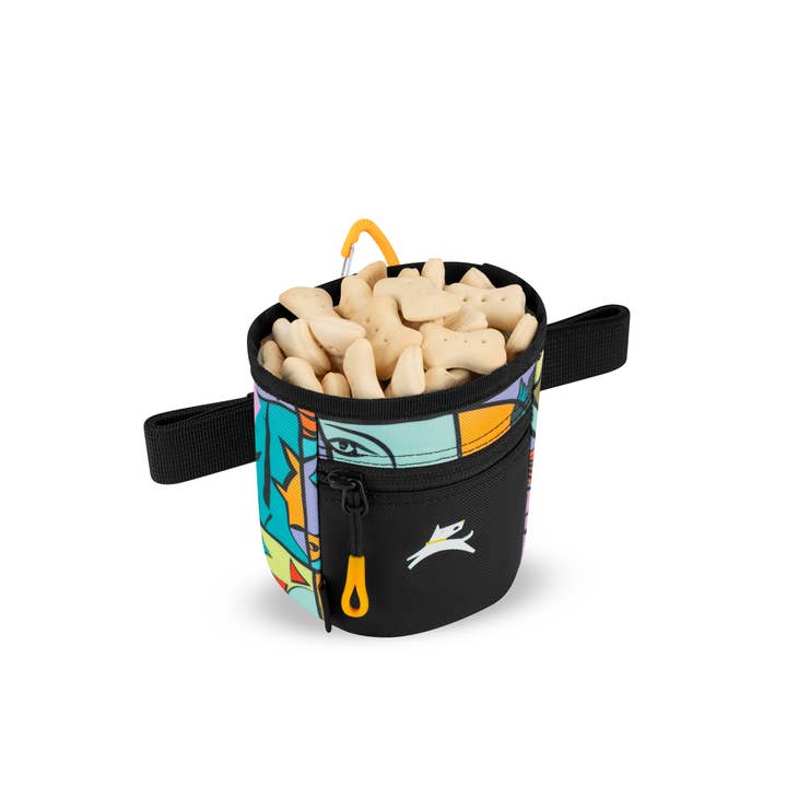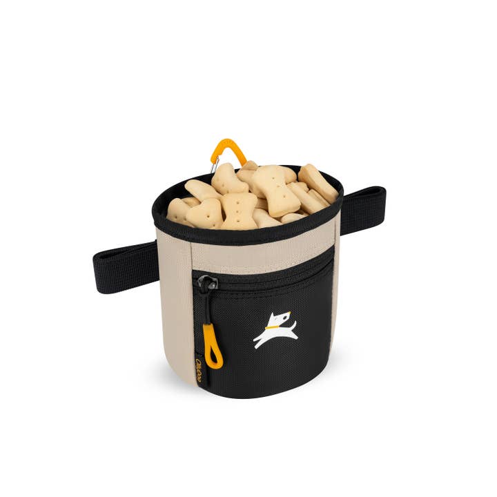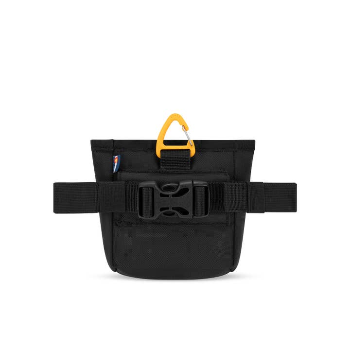 It’s the number ONE essential treat pouch for all dog trainers! Grab a dog treat quickly with a magnetic closure from this small but spacious pouch when your dog minds their manners, or just because! Made with recycled materials, this water-resistant pouch easily straps around your waist or clips anywhere with ease.
